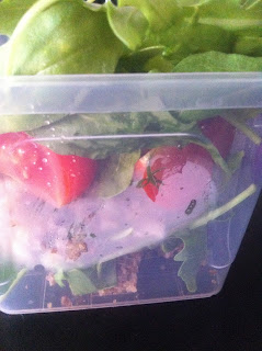 I took it for work in small container with tomato and rocker salad. Pour olive oil and enjoy.